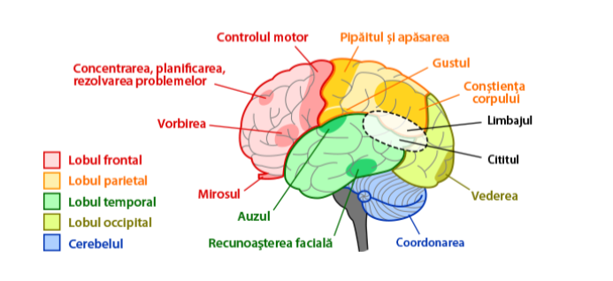 the temporal lobe (lateral) contains various functions, such as the speech center (Wernicke center), visual working memory or recognition of faces and objects.