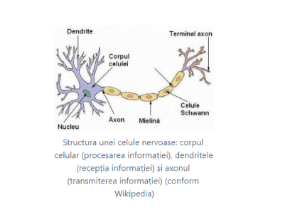 Structure of a nerve cell: cell body (information processing), dendrites (information reception) and axon (information transmission) (according to Wikipedia)