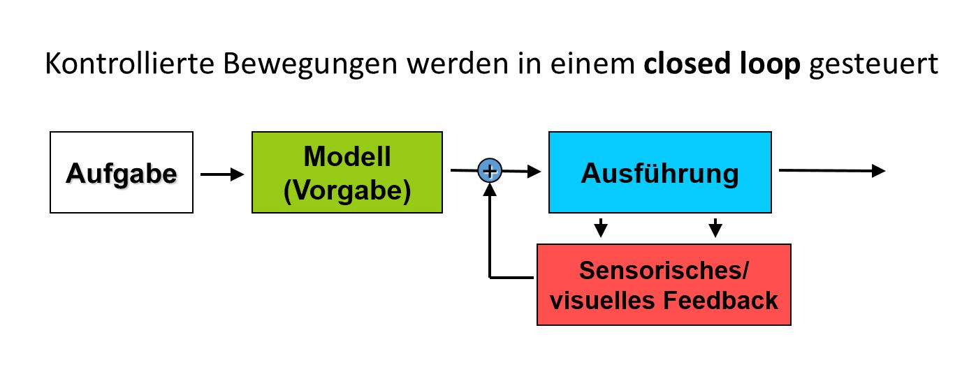 Oamenii au la dispoziție două mecanisme diferite pentru executarea mișcărilor voluntare: Mișcările de feedback se caracterizează printr-un control maxim și sunt utilizate în mod normal pentru mișcările neînvățate. Pe de altă parte, mișcările automate de tip feed-forward se caracterizează printr-o eficiență maximă și sunt utilizate pentru mișcările învățate.