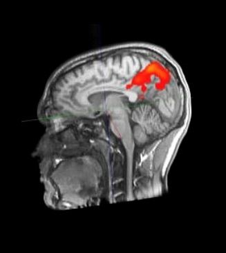 fMRT Imaginea unei persoane de 24 de ani - https://de.wikipedia.org/wiki/Funktionelle_Magnetresonanztomographie#/media/Datei:Aktivitaethinten.jpg